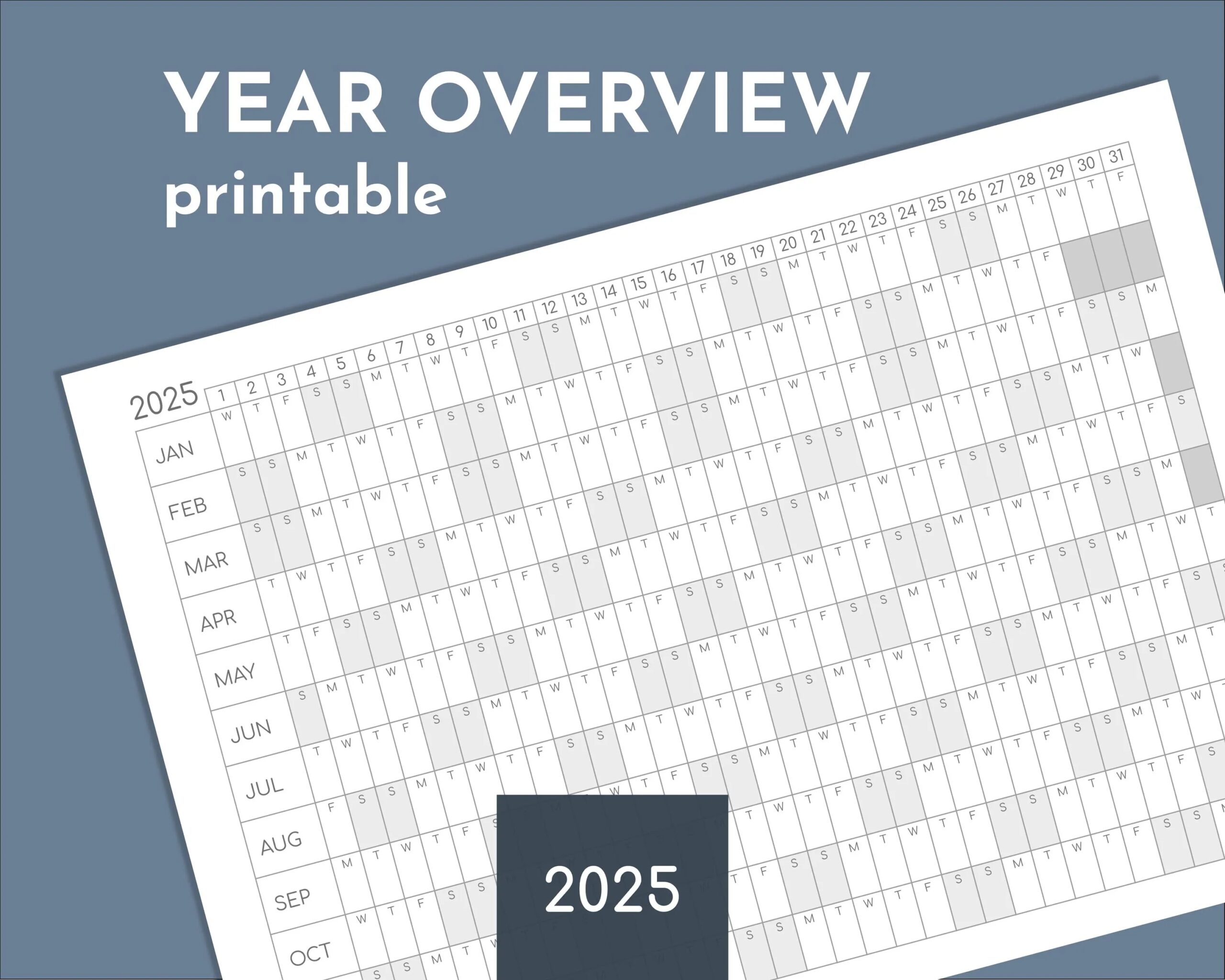 2025 Yearly Overview Printable Calendar Year On One Page Print At A4 Up To A0 Or Letter Etsy