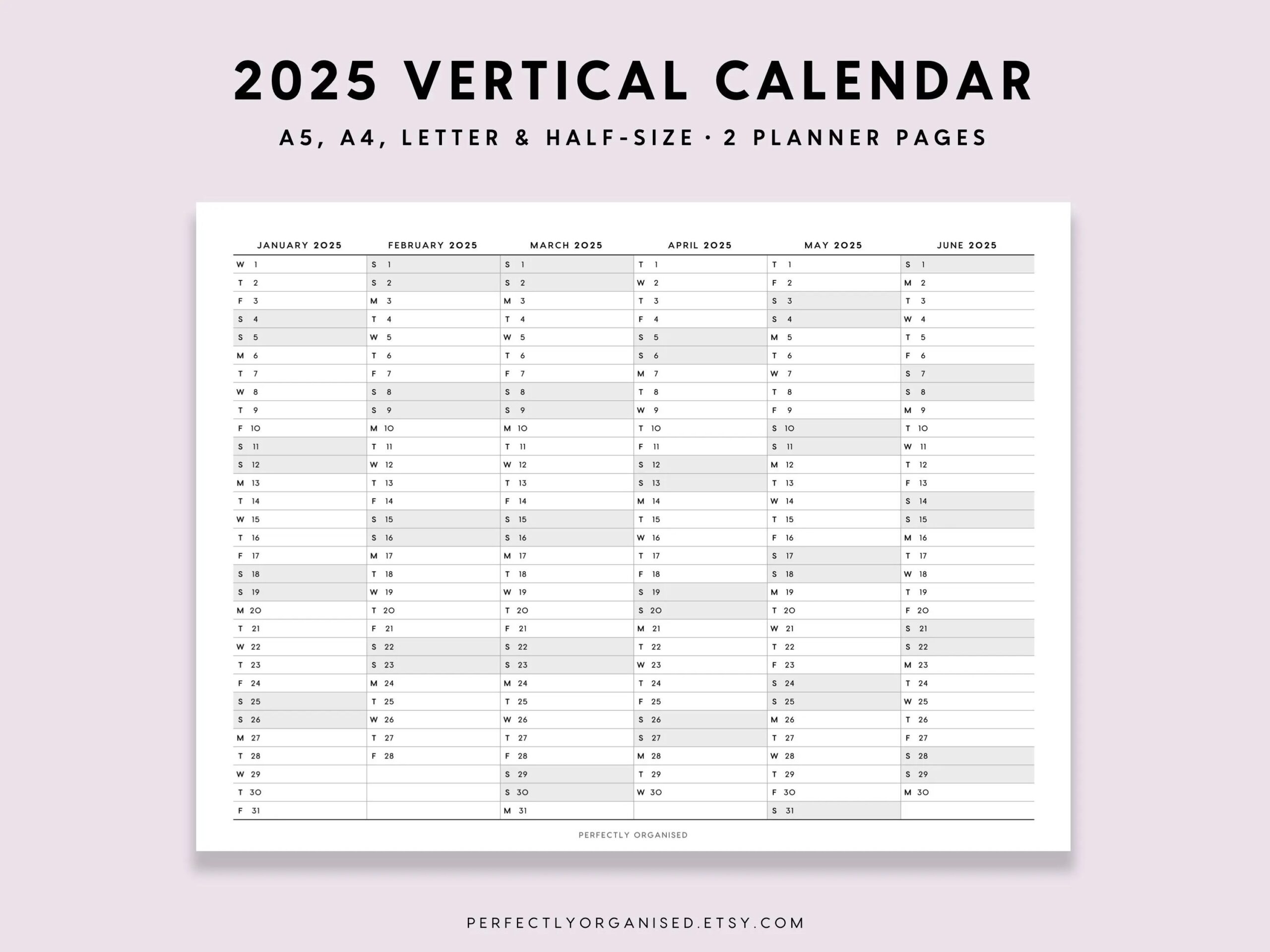 2025 Vertical Calendar 2025 Planner 2025 Foldout Vertical Calendar 2025 Overview Classic A5 Half size A4 Letter PRINTABLE Etsy